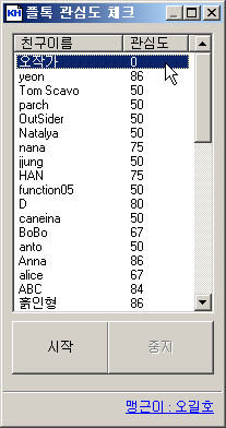 04Apr2007년 April 4일 プレイトークの関心度チェック 오길호2024-09-02T04:17:42+09:00 ガラクタ プレイトークが会員間の関心を提供しているので、作ってみました。 Internet Explorer でログインしている必要があります。 * IE7/XP SP2 で動作することを確認しました。 ダウンロード Leave a Reply Cancel reply이메일 주소는 공개되지 않습니다. (* 질문, 건의사항 등은 "질문게시판"을 이용해주세요)Comment * Name * Email * Website