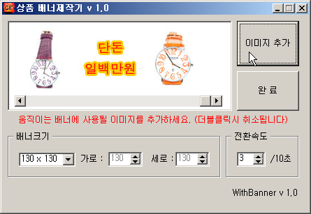 オークションやオンケットなどのオープンマーケットで、商品リストに使用される商品バナーをPhotoshopやImageReadyに不慣れな方でも簡単に作成できます。使い方は簡単です。アニメーションさせたい画像を「画像追加」ボタンで追加するか、画像リストにドラッグして、完了ボタンをクリックするだけです!