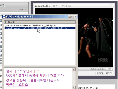 오길호2024-09-02T04:11:15+09:00自分のIPを選択し、スタートをクリック。 UCCサイトを使用中に再生時にFLVファイルのリストが表示されます。 抽出を停止したい場合は、停止ボタンをクリック。 さまざまな環境でテストしてください。(IE、Firefox、... Windows 2000/XP以上でのみ可能です。) * このプログラムは、各UCCサイトのSWFファイルを分析してFLVを探すのではなく、ユーザーのコンピュータで使用されたネットワーク情報を分析してFLVを見つけます。* 著作権法第30条(私的利用のための複製):公開された著作物を営利目的ではなく、個人的に利用したり、家庭やそれに準じた限られた範囲で利用する場合、その利用者はこれを複製できます。ただし、公衆の使用に提供するために設置された複製機器による複製は適用されません。 ダウンロード
